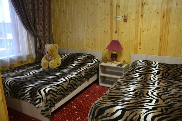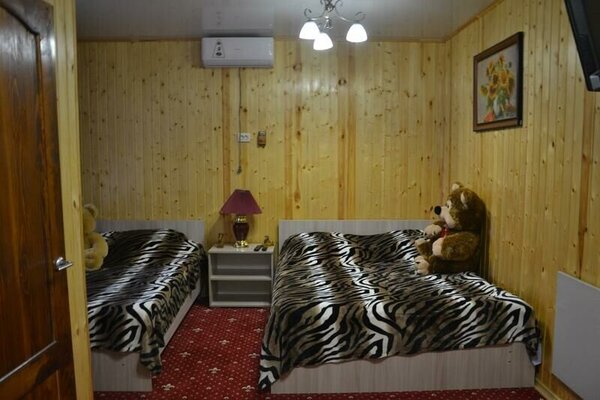 Для вашего комфорта мы предлагаем уютные домики с панорамным видом на пруд. В каждом номере есть две двуспальные кровати, обеспечивающие комфортный сон для всей семьи.