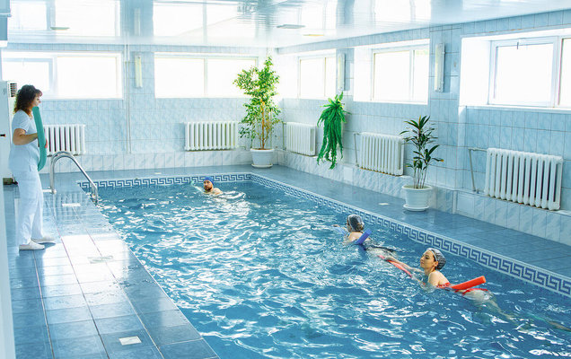 Посещение бассейна включено в программу санаторно-курортного лечения – от 2 посещений в неделю за весь курс лечения.