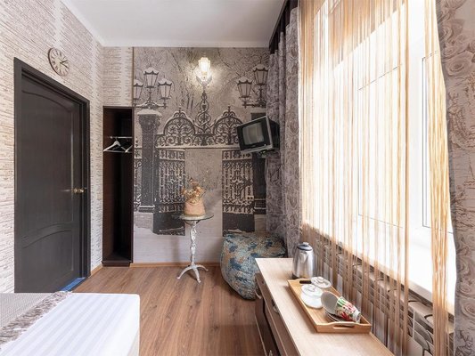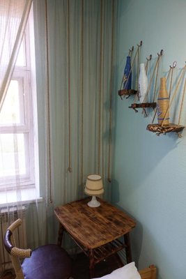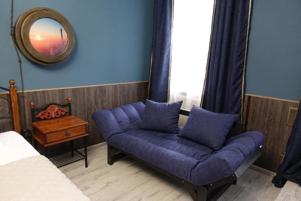 Уютная домашняя атмосфера. Дизайн мини-отеля приближен к историческому духу города военно-морской славы Кронштадта. В интерьере использованы изображения исторических мест Кронштадта. Окна, большей части номеров выходят на Безымянный переулок и Андреевский парк, и Тихвинскую часовню, легендарный котел и каменную карту Кронштадта.