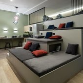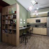 Для размещения предлагаются номера или койко-место в общей комнате. Современный ремонт и приятная цветовая гамма располагают к отдыху. Здесь вы найдете все необходимое: спальные места, запирающиеся шкафчики, рабочую зону, душевая и санузел на этаже.