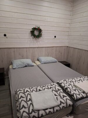 К вашим услугам комфортабельные дома, оборудованные всем для удобного проживания: просторная кухня-гостиная с современной бытовой техникой и посудой, удобные кровати с ортопедическими матрасами и свежим постельным бельем, зона отдыха с телевизором, а также современный санузел с душем и необходимыми принадлежностями. В домах установлены теплые полы.