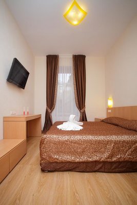 Для комфортного пребывания в отеле предоагаются светлые номера оборудованы индивидуальным кондиционером, телевизором с плоским экраном и сервантом. В номерах имеется холодильник, чайник и кухонная утварь, а также гипоаллергенные подушки, подушки из пены с памятью и пуховые подушки.