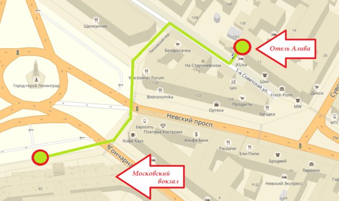 - от Московского вокзала: пешком 290 м ≈2 мин