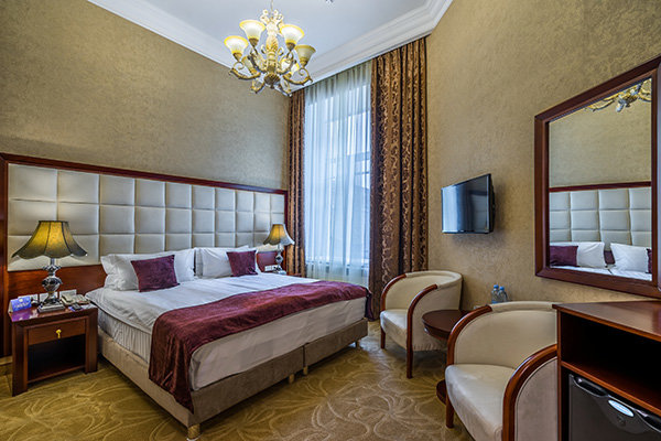 Элегантные номера, выполненные в классическом стиле и теплых тонах, создают ощущение комфорта и уюта, а современное оснащение соответствует стандартам качества высокого уровня.
