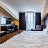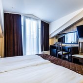 Номерной фонд представлен несколькими категориями, которые укомплектованы всем необходимым, для того, чтобы Вы могли прожить и достаточно длительный срок. Каждый номер включает в себя качественную мебель для сна и хранения вещей, современную технику и имеет доступ в Интернет.