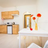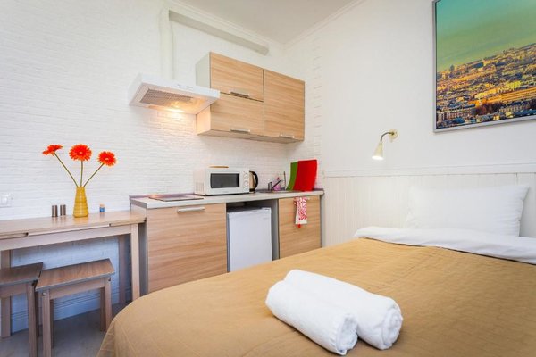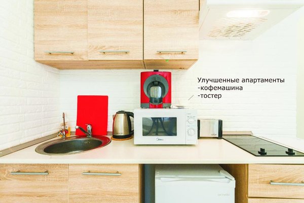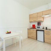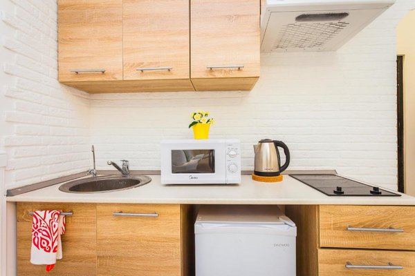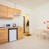 В апартаментах есть мини-кухня с микроволновой печью и холодильником. По желанию гости могут заказать завтрак.