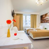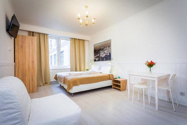 Гости могут расположиться в комфортабельных и светлых апартаментах. Для удобства гостей предусмотрены телевизор с плоским экраном, собственная ванная комната с душем, стиральная машина.