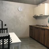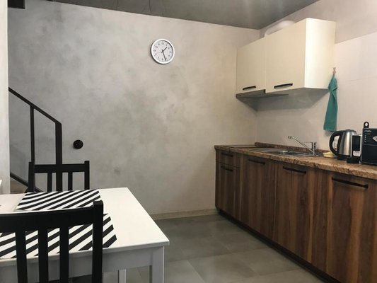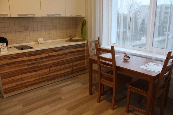 В каждом номере оборудована мини-кухня, которая располагает плитой, чайником, холодильником и кухонной утварью. Обеденная зона также оборудована в номере.