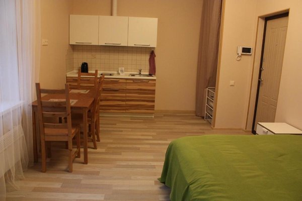 В номерах отеля можно проживать с домашними животными. В санузле — теплый пол. Помещения апарт-отеля светлые и уютные. Среди прочих удобств: телевизор с плоским экраном, стиральная машина.