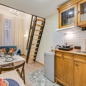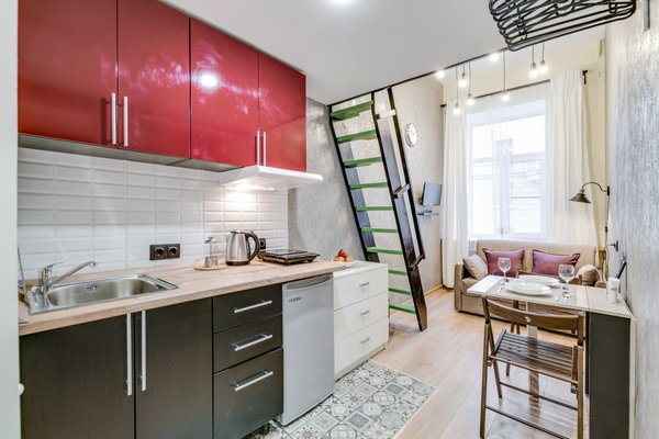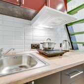 Во всех вариантах размещения есть небольшая кухня с посудой и бытовой техникой. Также в шаговой доступности находятся заведения общественного питания, где можно вкусно и недорого покушать.