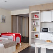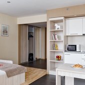 Гости могут самостоятельно приготовить пищу на полностью оборудованной кухне. Также можно воспользоваться услугой доставки еды и напитков в номер или посетить ближайшие заведения общественного питания.