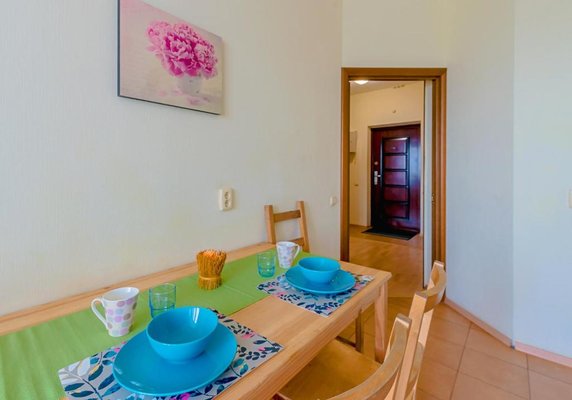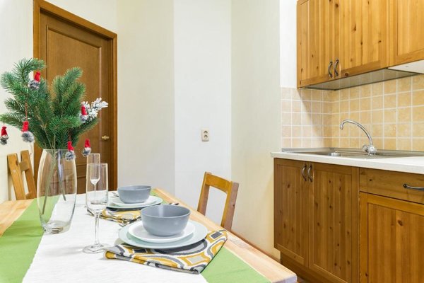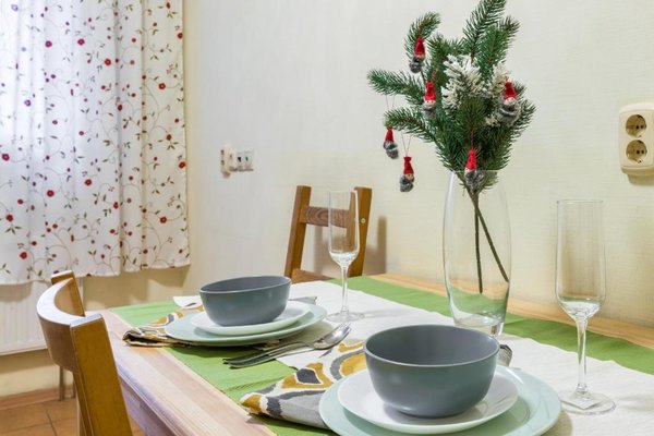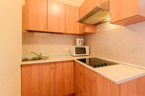 Специально оборудована кухня для самостоятельно приготовления. Неподалеку имеется ресторан, где готовятся сытные блюда.
