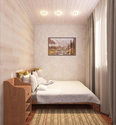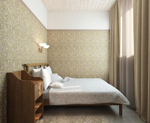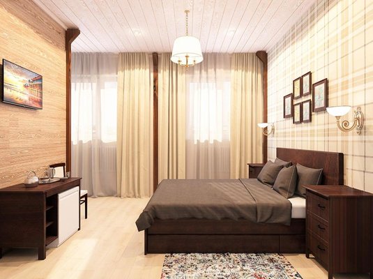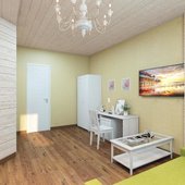 Светлые номера оборудованы всеми удобствами для размещения с комфортом. В распоряжении постояльцев будут: прикроватные тумбочки, шкаф для одежды, стол со стульями, телевизор с плоским экраном.