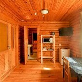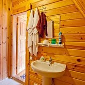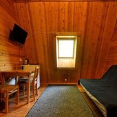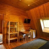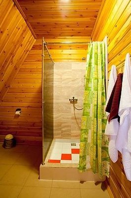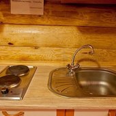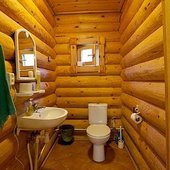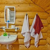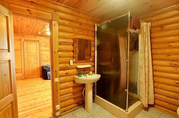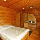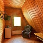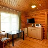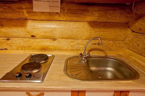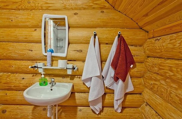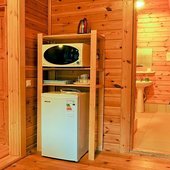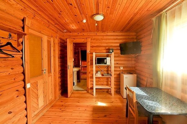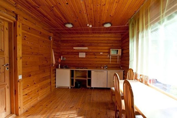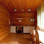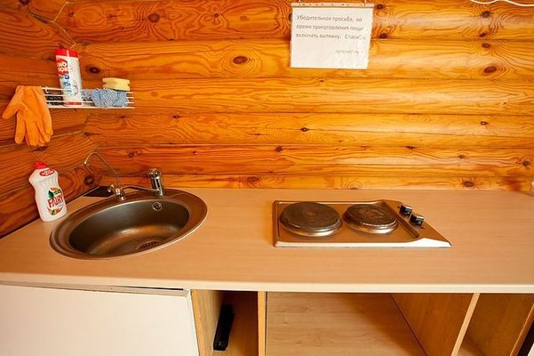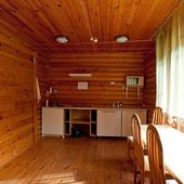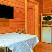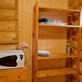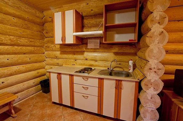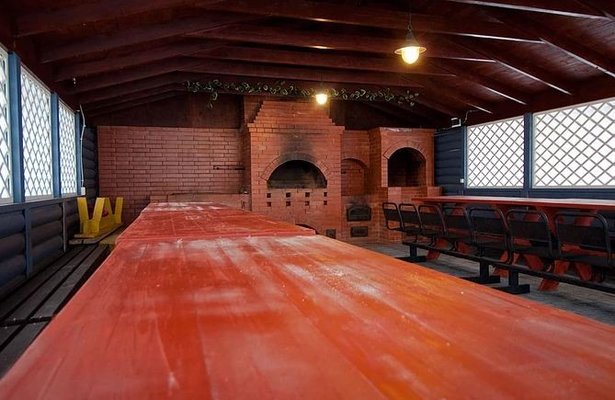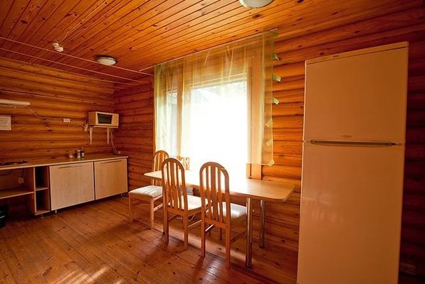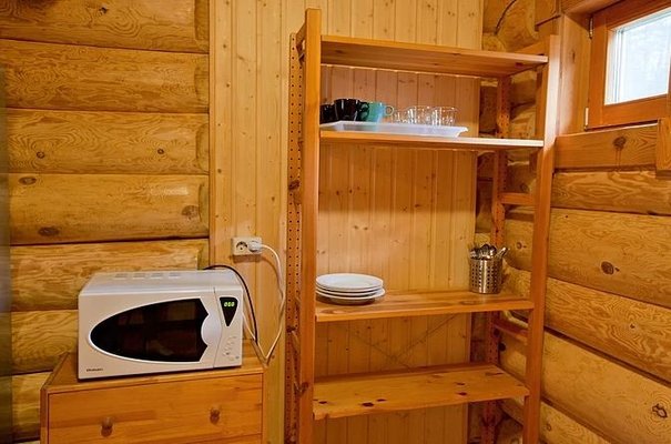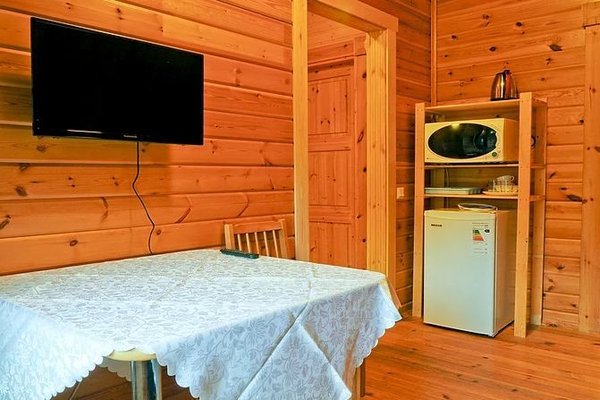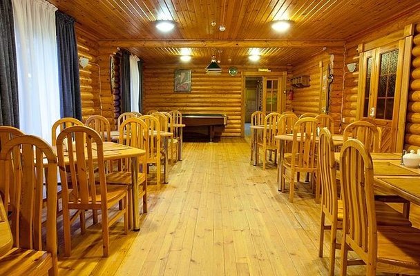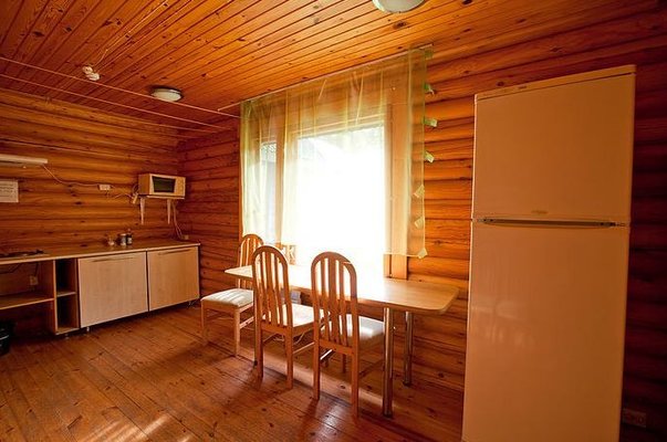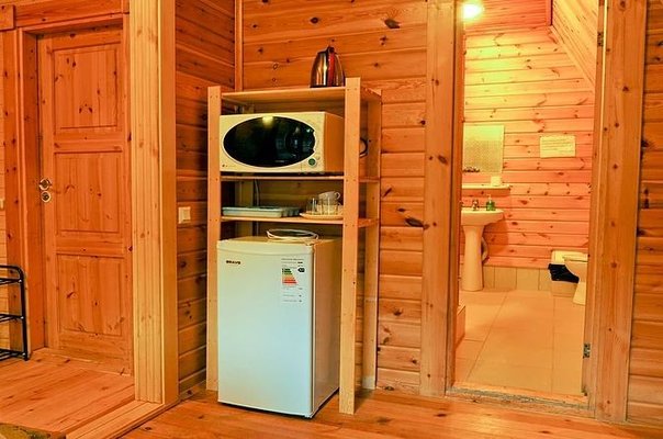 На общей кухне можно приготовить или разогреть еду. Возле каждого коттеджа установлены мангалы и скамейки, а для больших компаний предусмотрена большая беседка с летней кухней. В ней имеется русская печь, тандыр и мангал. При желании можно посетить кафе, которое располагается в административном корпусе, и отведать свежие блюда.