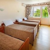 Отдыхающие размещаются в деревянных домиках. Каждый домик имеет свою отдельную кухню и санузел. Предоставляется постельное белье и средства личной гигиены.