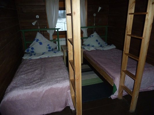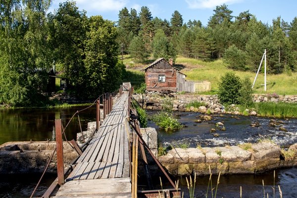 Едете по КАД до съезда на Новоприозерское шоссе — Мега Парнас. Съезжаете на шоссе и едете все время по главной дороге, никуда не сворачивая до пос. Сапёрное, это следующий поселок за Лосево. Примерно 90 км. По новой дороге — до Сосново, на съезд на Сосново и поворот налево. В пос. Сапёрное после зачёркнутого знака «окончание населенного пункта» указатель и поворот налево. Указатель на пос. Мельниково. Едем по просёлочной дороге еще 28 км. Въезжаете в пос. Мельниково (есть указатель), на Т-образном перекрестке поворачиваете налево. Едете прямо до кругового движения, на круге нужен съезд на Бородинское (есть указатель), это 3-й съезд. Церковь должна остаться справа сзади. Кафе «Мельница» тоже справа. Едете еще 2 км. Увидите знак «Мельниково» зачеркнутый — окончание населенного пункта, почти сразу за знаком (около 100 м) въезд в горку в лес — есть указатель «Хутор белой Козы». Едем по этой дорожке до зеленых ворот, от ворот сворачиваете направо на поляну. Перед Вами домики — с Зеленой и Красной Крышей.