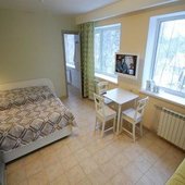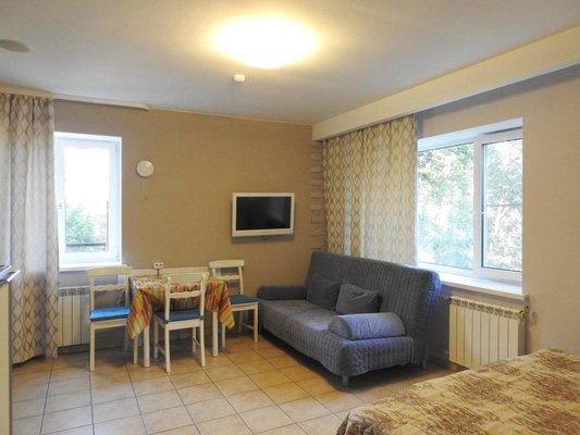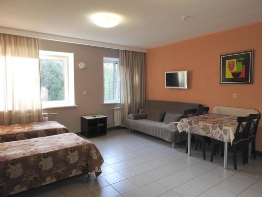 Светлые номера оснащены телевизором и шкафом. В большинстве номеров есть собственная ванная комната, холодильник и диван.