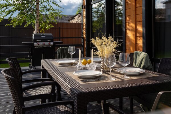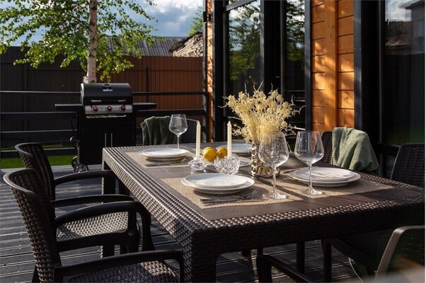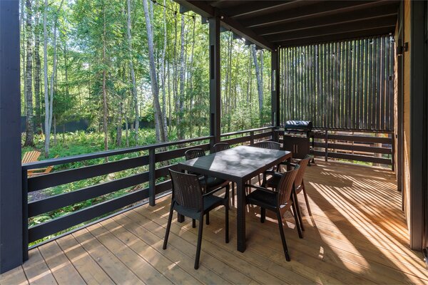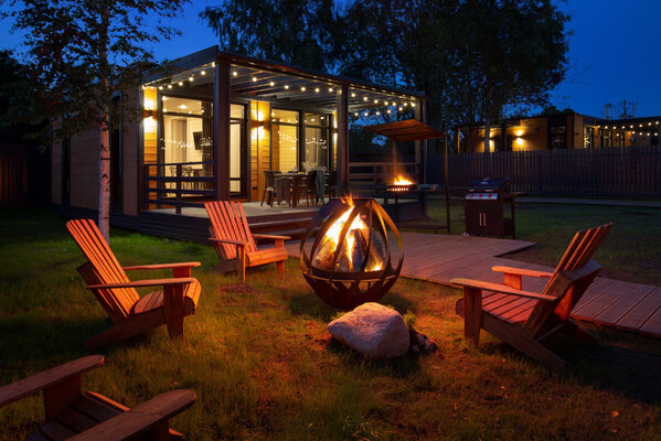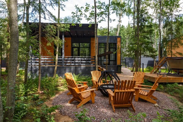 Особое внимание мы уделили отдыху на свежем воздухе. Возле каждого коттеджа обустроена приватная зона барбекю с двумя видами мангалов — классическим и газовым, а также большая костровая зона с удобной садовой мебелью для вечерних посиделок у огня.