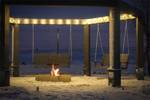 На территории базы вас ждет уютная зона отдыха с костровищем и качелями — идеальное место для вечерних посиделок под гитару. Для любителей банных процедур — отдельная баня с горячим чаном под открытым небом.