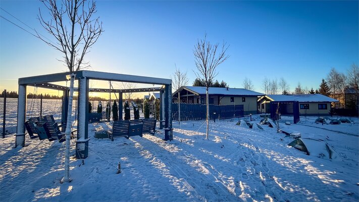 Озеро Мичуринское находится всего в нескольких шагах, а горнолыжный комплекс — в 10 минутах езды. Вблизи базы расположена оленья ферма, конные клубы, веревочный парк и магазины, что сделает ваш отдых еще более разнообразным.