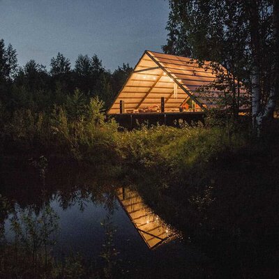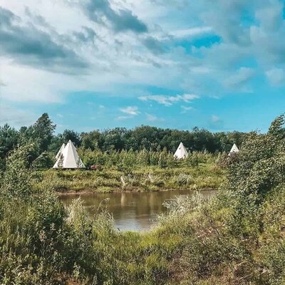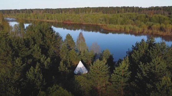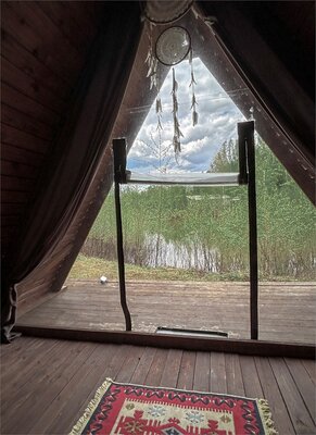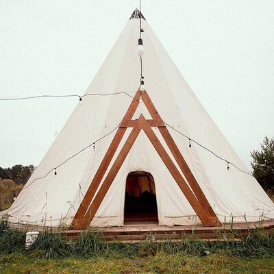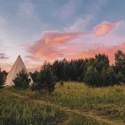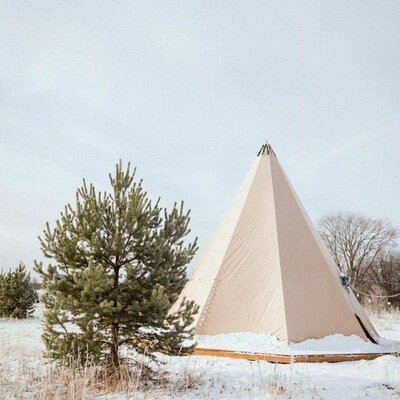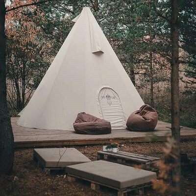 «Индейская юрта» на берегу реки с костровищем внутри, можно посидеть у костра с близкими.