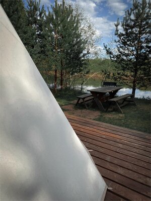 Территория кемпинга очень большая – порядка 40 гектар. Кемпинг состоит из 2х локаций: локация на внутреннем пруду и локация на реке.