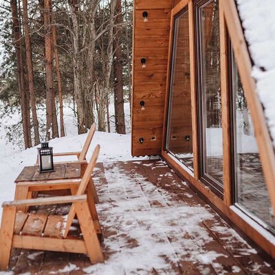 Можно на двоих, а так же будет комфортно до 4-5 человек. Работает круглогодично.
