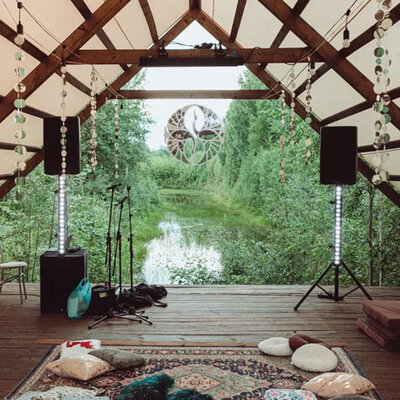 Зона для медитаций с видом на красивый пруд. Идеально подходит для занятий йогой.