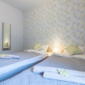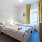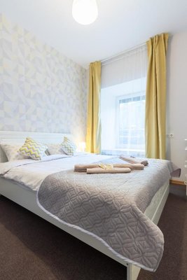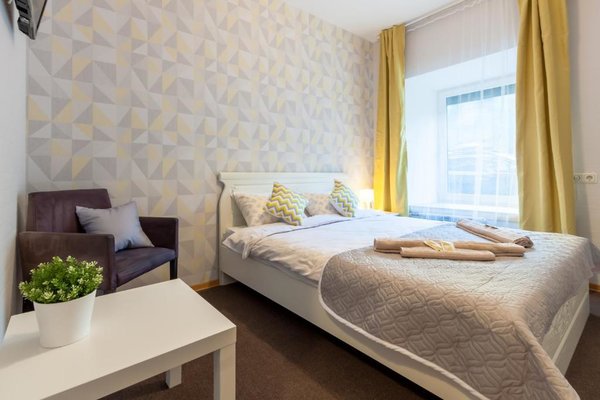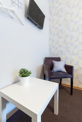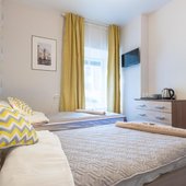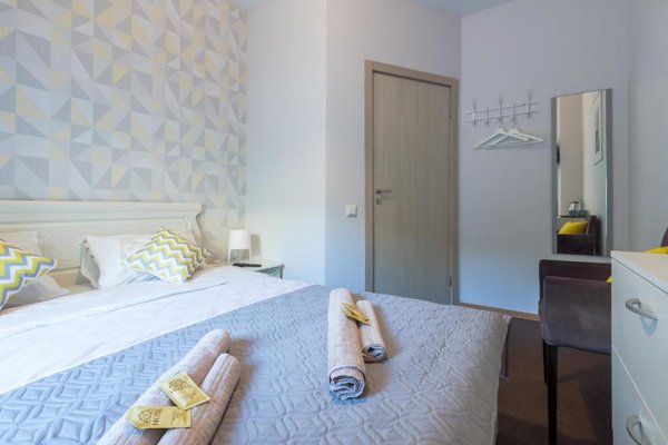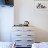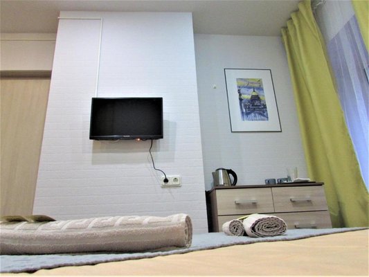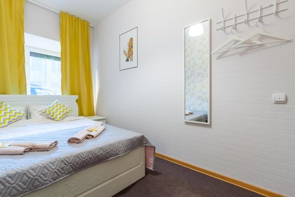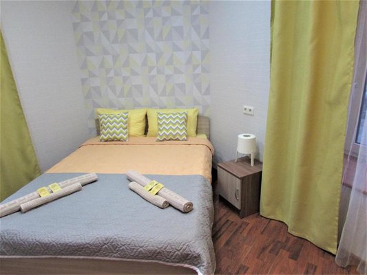 Просторные апартаменты оснащены большой кроватью с удобным матрасом, качественной мебелью, ЖК-телевизором, а так же сплит-системой. Санузел с душем и туалетом, феном и банными принадлежностями.