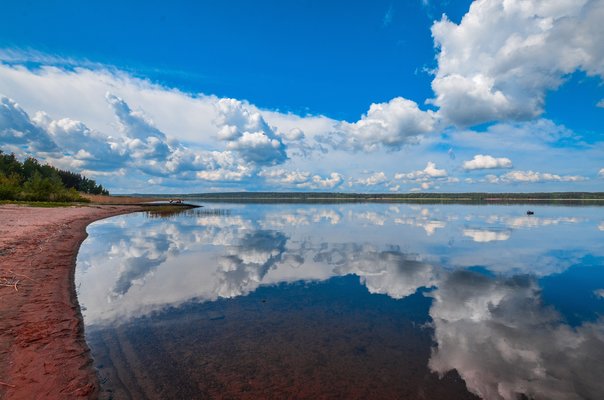 Пляж на берегу озера