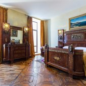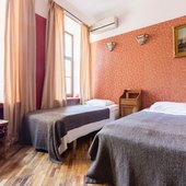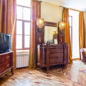 К услугам гостей 27 современных изысканных номеров. К пятилетию отеля известные художники города выполнили роспись дверей каждой категории своими фантазиями, на музыку знаменитого русского композитора. На верхнем этаже - антик-отель, где гости смогут раствориться в неповторимой атмосфере Петербурга. Дизайнерские комнаты нижнего этажа декорированы и ненавязчиво продолжают тему расписанных дверей.