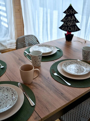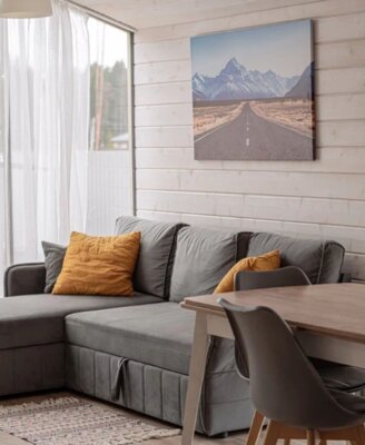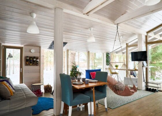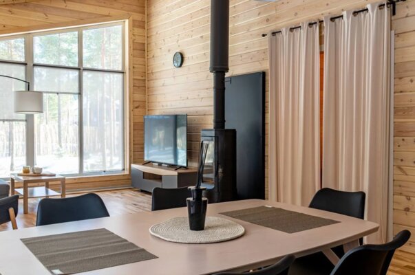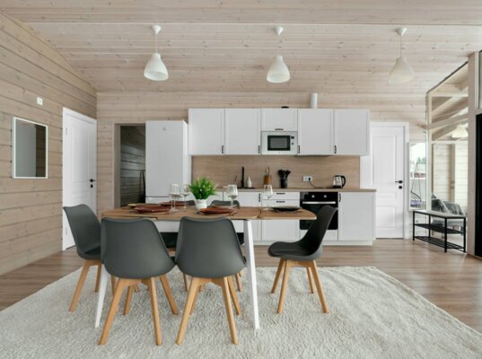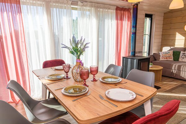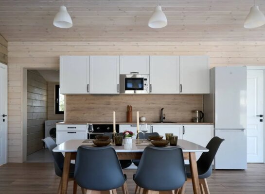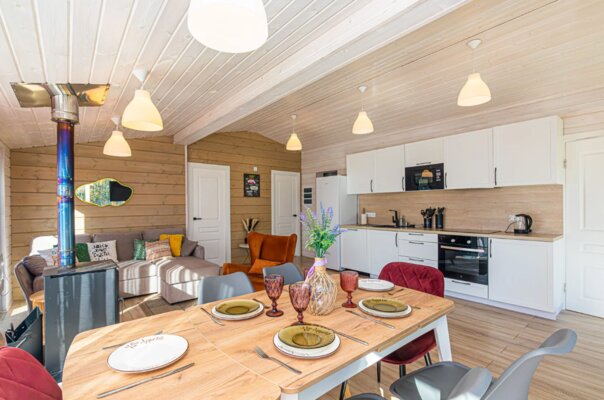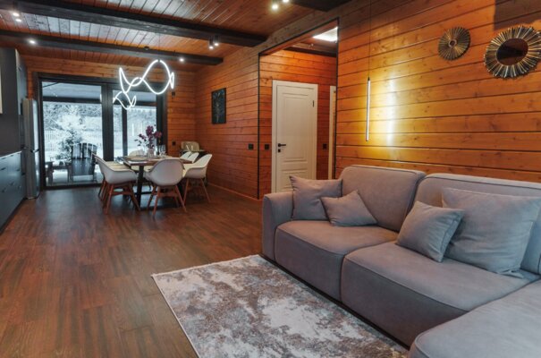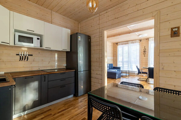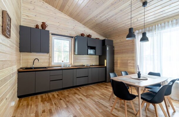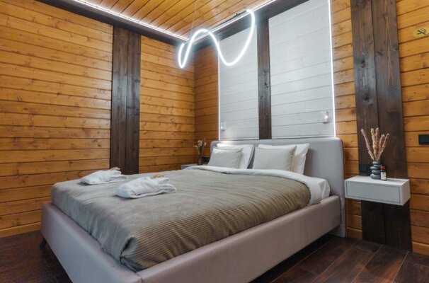 В каждом коттедже вас ждет все необходимое для комфортного отдыха: качественное постельное белье и полотенца, теплые пледы, дрова и брикеты для камина, а также полностью оборудованная кухня со всей необходимой посудой, специями и базовыми продуктами (масло, соль, сахар, чай).