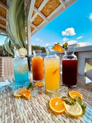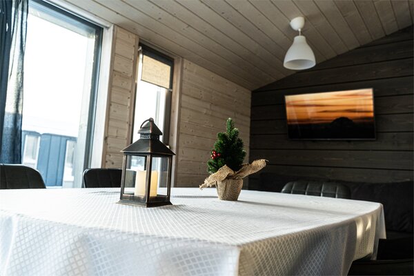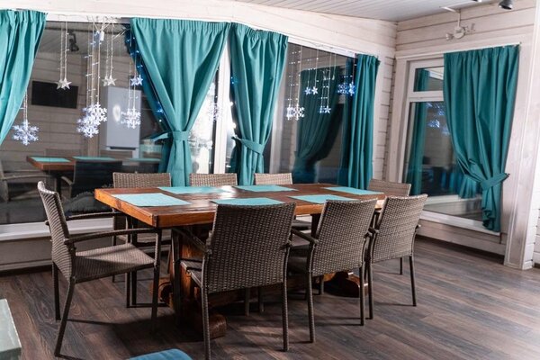 В зале 30 посадочных мест, а летом вы можете разместиться на комфортабельной террасе, беседках на воде.