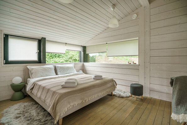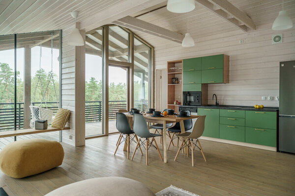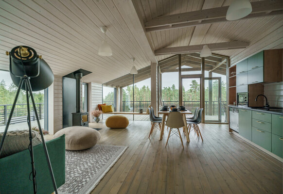 «Три тома» — уникальный архитектурный проект, где дома раскинуты на живописном склоне у Финского залива. Всего в двадцати метрах от них открывается идеальное пространство для тех, кто ценит эстетику, внимание к деталям и тишину. Всесезонные дома оснащены всем необходимым для комфортной жизни. Просторные террасы, окружающие каждый дом, и панорамные окна стирают границу между уютным интерьером и окружающей природой: дневной свет свободно проникает внутрь, наполняя пространство теплом. Гостиная становится центром притяжения, где время будто замедляется, и можно насладиться моментами — утренним кофе с видом на сосны или бокалом вина, пока солнце медленно исчезает за горизонтом, наполняя воздух живыми звуками и ароматами природы. В каждом доме есть собственная библиотека с разнообразиями книг, которые можно читать у камина или уютно устроившись в кресле-гамаке на террасе — как в одиночестве, так и вслух с детьми. Среди услуг — сауна по предварительному бронированию. Посёлок, где расположены дома, отличается развитой инфраструктурой: всего в десяти метрах — детская площадка с теннисным столом; в нескольких минутах пешей прогулки — площадки для баскетбола и футбола, а также батут для активного отдыха.