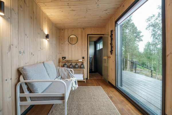 Сауна с панорамным окном доступна по предварительному бронированию.