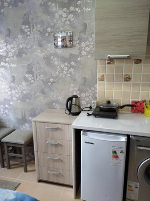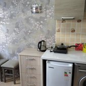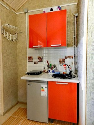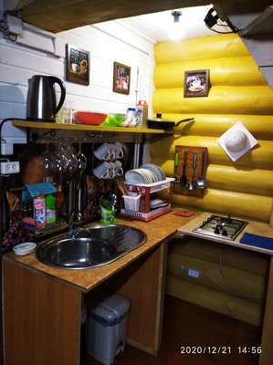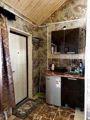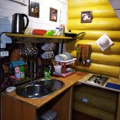Для самостоятельного приготовления еды предусмотрена кухонная плита и достаточное количество разнообразной посуды. Для постояльцев возможна доставка некоторых продуктов питания.