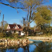 Загородный отель «Хутор Скреблово» располагается в живописной местности в Ленинградской области на озере Врево. Постояльцам предлагается аренда снаряжения для активного отдыха и водных развлечений.