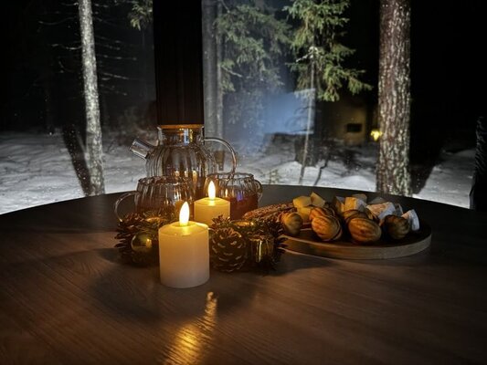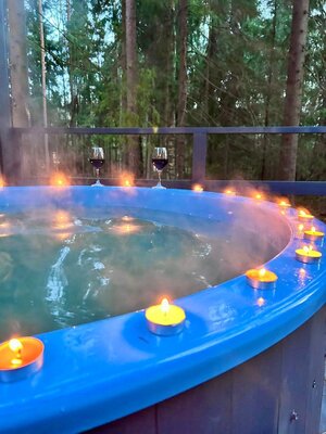 Теплая согревающая купель на собственной террасе. Услуга доступна в любое время года.