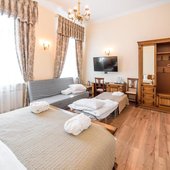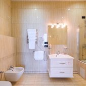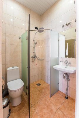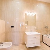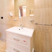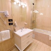 Номера светлые, имеют рациональную планировку и оснащены рядом необходимых для длительного отдыха удобств и услуг. В ванной есть фен и набор средств для личной гигиены.