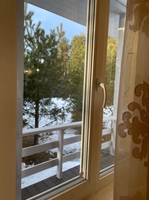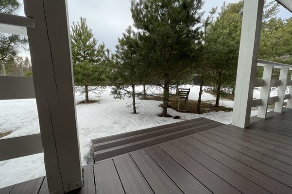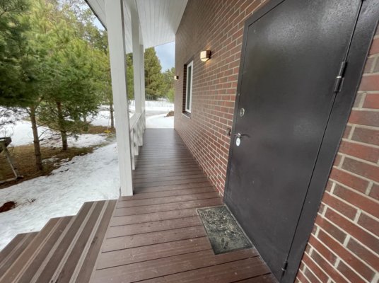 Дом расположен на окраине коттеджного поселка, окруженного сосновым лесом, всего в 5 км от Приозерска. Его участок площадью 12 соток окружен забором.