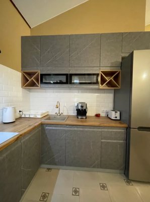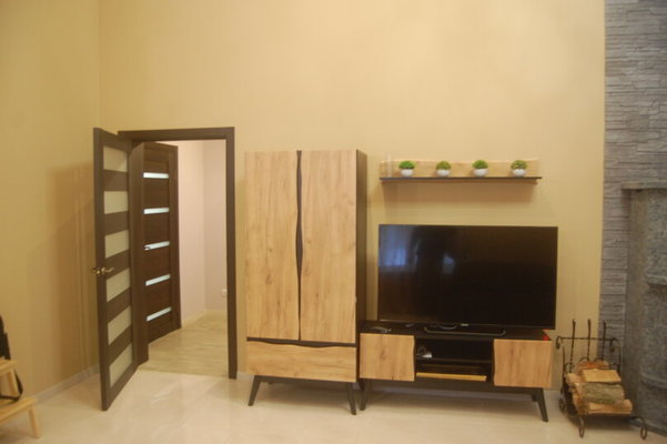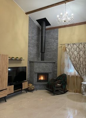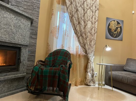 В гостиной дома установлен камин из карельского камня, создающий уютную атмосферу. В санузле есть отдельная зона для стирки. Кроме того, дом оборудован собственной сауной с электрической каменкой. Вся мебель и техника в доме новые, а кухня оснащена всем необходимым для приготовления пищи.