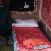 А для любителей спать "под звездами" в своем домике – есть удобная поляна для установки своей палатки в летний сезон.