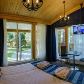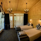 По согласованию с администрацией. Собаки декоративных пород 30-40 см в холке, 6-8 кг – обязателен намордник и поводок. Цена: 2 000/5 000 руб, в зависимости от длительности проживания. Максимальное количество – до 2 в номере/коттедже.