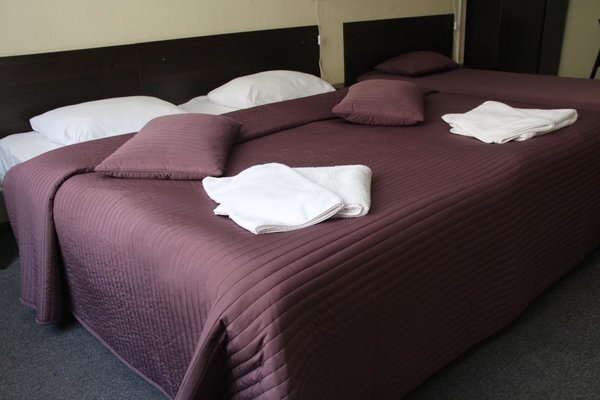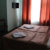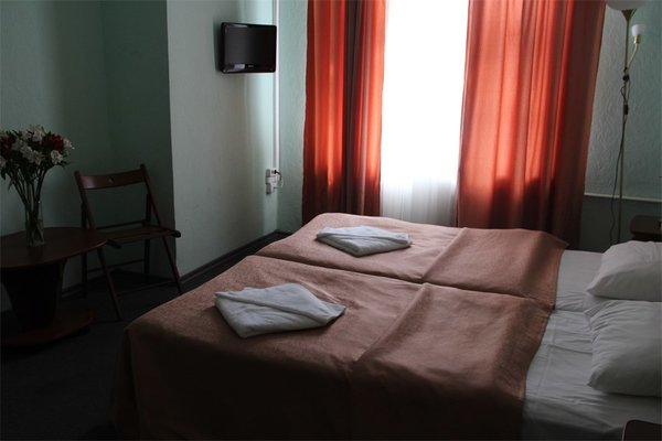 Останавливались на две ночи. Приехали рано утром, заселение строго с 12. Разрешили оставить сумки. Пришлось погулять до заселения. Чисто, комната вполне просторная (двухместный номер) - две односпальные кровати, сдвинутые вместе, телевизор, шкаф, две тумбочки, столик...