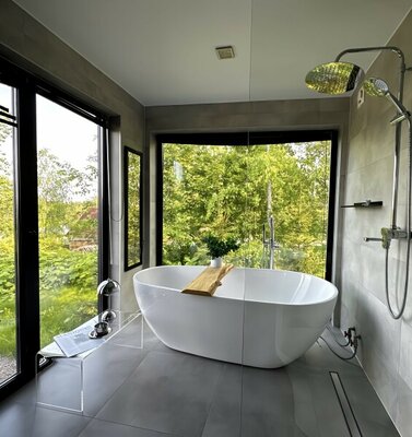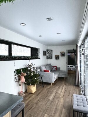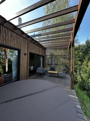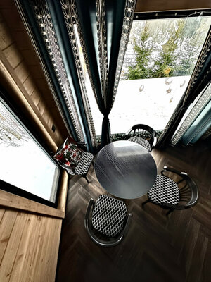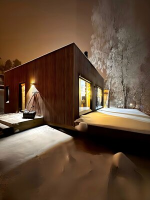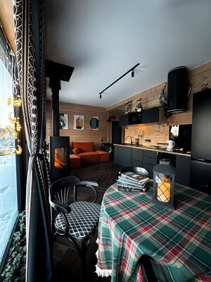 К услугам гостей три коттеджа, каждый из которых — оазис уединения и спокойствия. Продуманные интерьеры из натуральных материалов, мягкое освещение и панорамные окна создают атмосферу комфорта. Наслаждайтесь видами соснового леса, расслабляясь в современной ванной. Каждая терраса оборудована мангальной зоной, шезлонгами и костровой чашей для незабываемых вечеров. Центральное отопление, бойлеры, полностью оборудованные кухни с посудой и высокоскоростной интернет гарантируют ваше удобство.