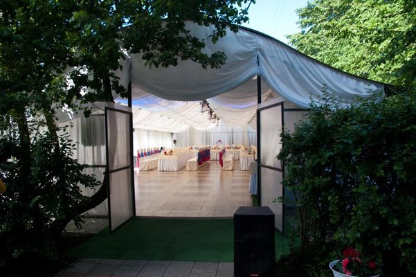 Есть возможность арендовать летний шатер вместимостью до 150 человек для проведения различных торжеств и мероприятий.