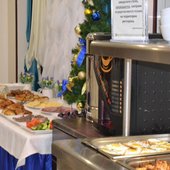 На первом этаже отеля находится ресторан, в котором организуется питание и возможно проведение банкетов.