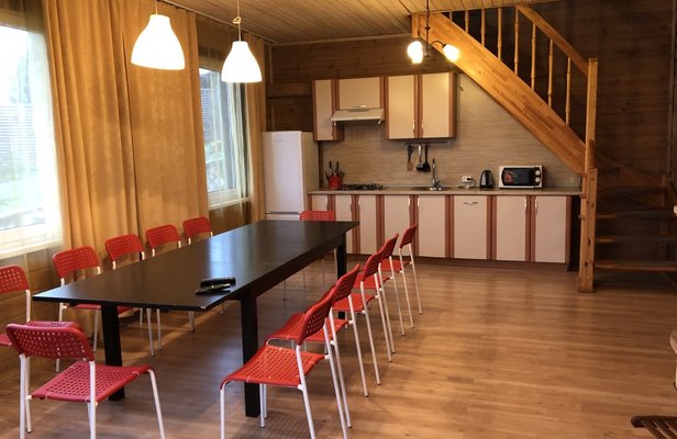 Размещайтесь в комфортабельных коттеджах, рассчитанных на компании до 15 человек, с прямым видом на озеро. Каждый дом оборудован всем необходимым для уютного отдыха: кухня с бытовой техникой и посудой, просторная гостиная, терраса, современный санузел с душем, а также собственная мангальная зона с шампурами для вкусных ужинов на свежем воздухе.