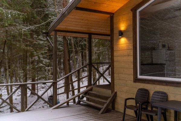 Обогреваемый панорамный зал-шатёр со всеми удобствами для посадки до 25 гостей. В теплом шале есть WiFi, пуфики, стол, настольные игры, книги, проигрыватель и телевизор. Всегда открыто в свободном доступе для гостей.