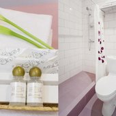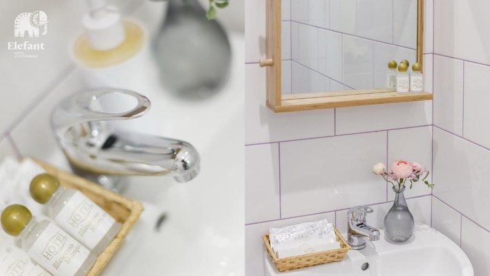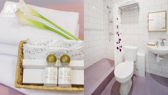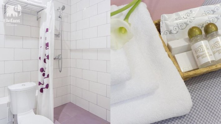 Собственная ванная комната с душем укомплектована бесплатными туалетно-косметическими принадлежностями.